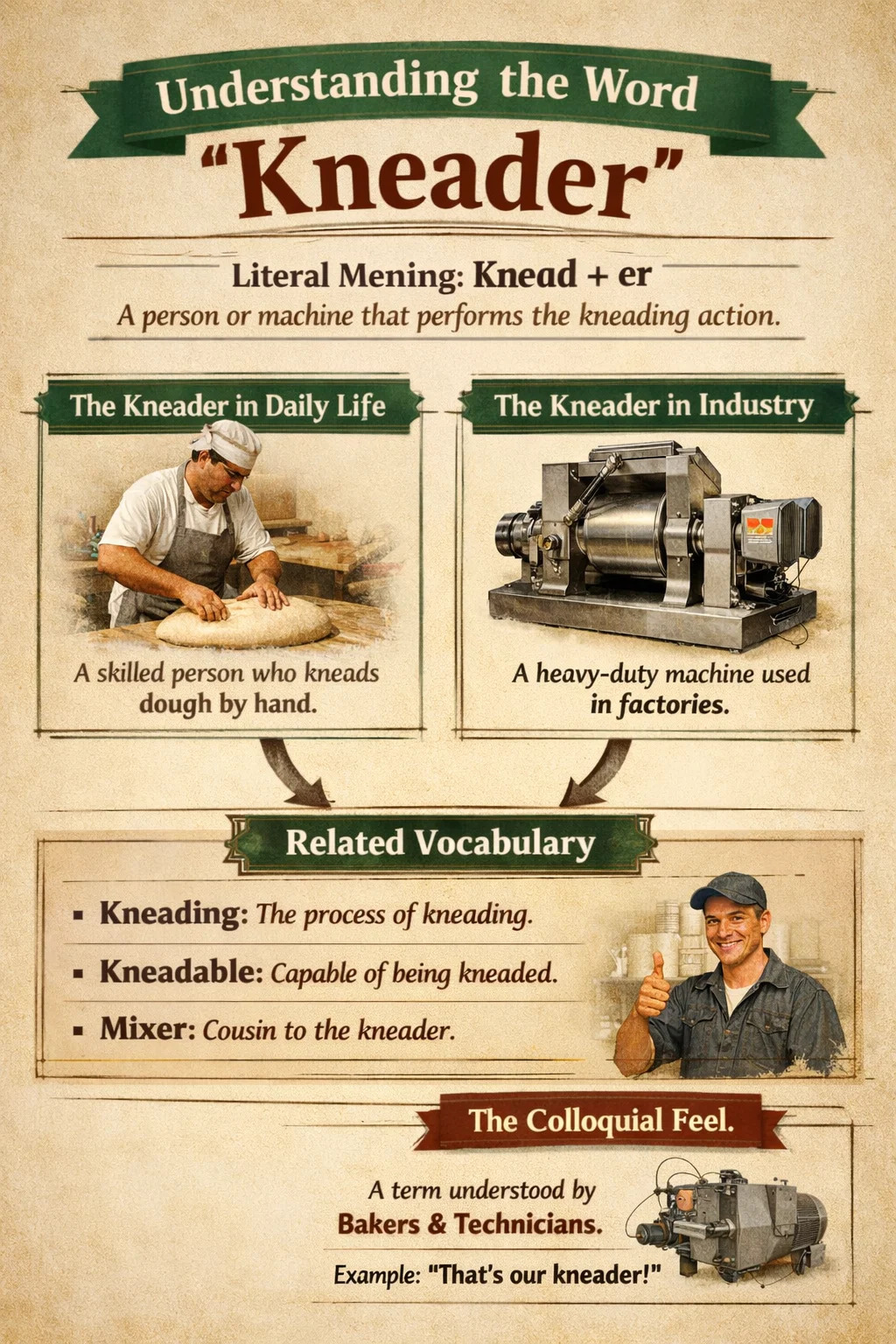 Kneader boleh merujuk kepada tuan yang bertanggungjawab secara khusus untuk mengadun dan menguli doh.