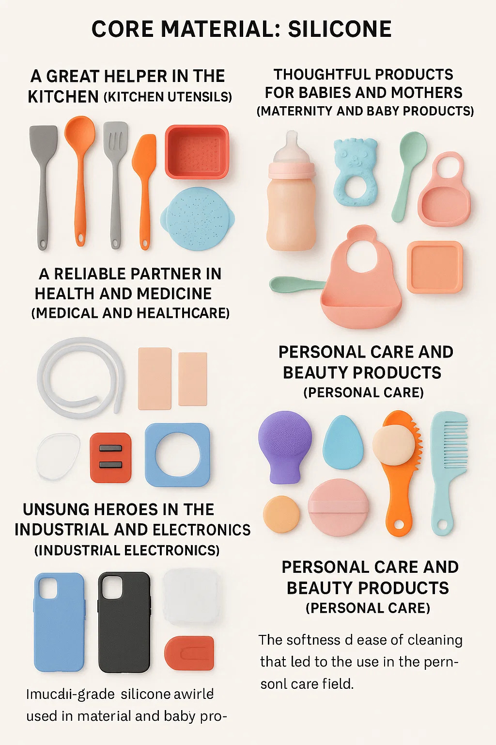 Produk silikon Adakah pelbagai item yang diperbuat daripada bahan khas yang dipanggil silikon. Ia tidak sama dengan "silikon" yang terdapat dalam produk elektronik. Inilah pecahan produk silikon: